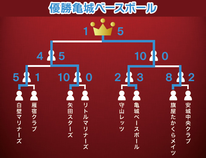 | 亀城ベースボール | 19-0〇 | ///// | 9-0〇 | 2-0〇 | 9-1〇 | 7-0〇 |